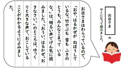ちなみに,先生は「お日さま」になって音読をしてみました。下のどうがを見て,