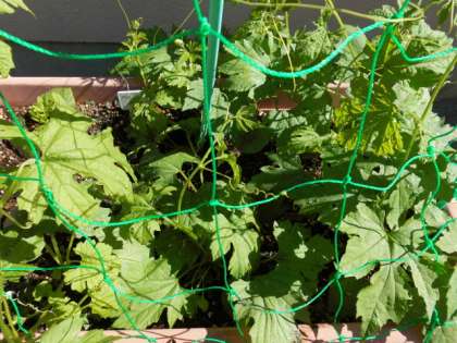 晴れた日が続き,ツルレイシやヘチマもぐんぐん成長しています。巻きひげも長く伸びてネットのまきついています。