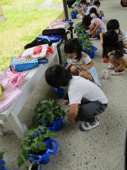 植木鉢に2つだけ残しておくようにして,後は,家に持って帰ったり,学校の大きなプランターで育てたりすることにしました。