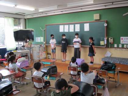 6月より始まりましたウォーミングアップ期間も最終日を迎え,全校児童が登校しました。5校時には,棟別集会を行い,来週から始まります集団登校について確認しました。6年生は新しいリーダーとして,張り切っていました。