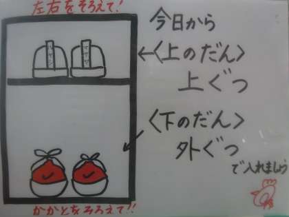 2段に分かれているので,上靴は上の段へ。下靴は下の段へ入れることにしました。