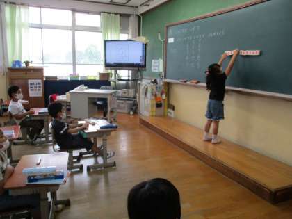 大きな数図ブロックを操作しながら,みんなに説明することにも挑戦しました。