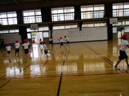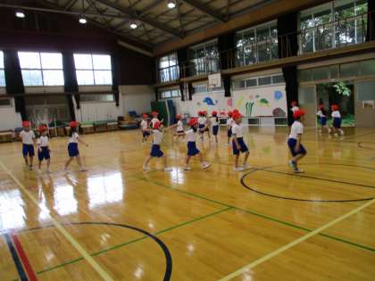 授業の最後には,「自分の動きを真似っこしてくれてうれしかった。」「○○さんの歩き方が面白かった。」「先頭で歩くのが楽しかった。」と,今日の授業の感想を発表していました。