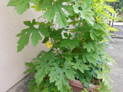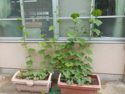ツルレイシやヘチマがつるを伸ばしてきました。どちらも花のつぼみができていて,ツルレイシは3つほどつ花が咲きました。今週は,成長のようすを観察する計画をしています。