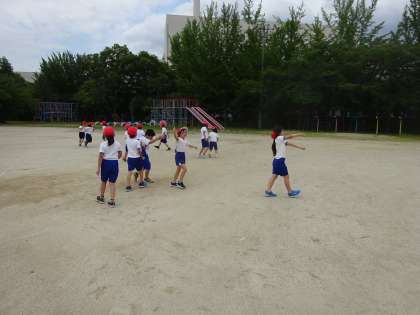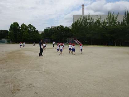2年生の体育では,「まねっこ かけあし」をしました。