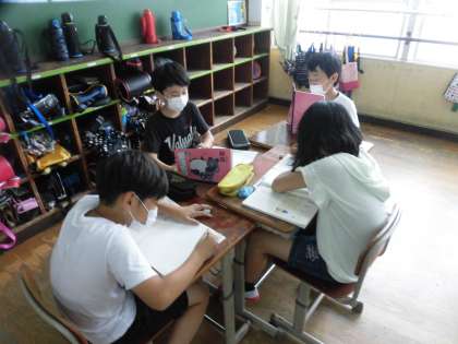 国語の「きいてきいてきいてみよう」という単元で,「きき手」「話し手」「記録者」の役割に分かれてインタビューし合いました。インタビューでは,普段の様子からその人の好きなことや得意なことを深くきいていることが多かったです。「記録者」はインタビューしている様子を一生懸命記録ししていました。