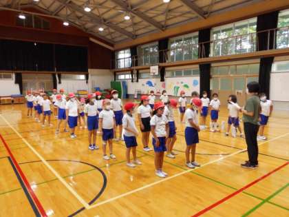 子どもたちの体力テストを行いました。午前中,運動場ではソフトボール投げを行いました。午後からは,体育館で,長座体前屈と反復横跳び,立ち幅跳びを行いました。