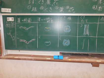 この実験から,植物には水の通り道があること,そしてその通り道を通って水が体全体に行きわたるということがわかりました。
