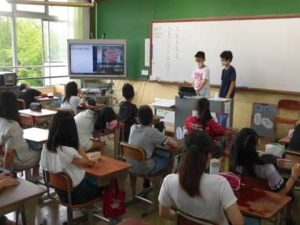 タブレット端末で作った資料をテレビに映して発表しました。こうして,自分の考えを分かりやすく伝えるための学習も意図的に行っていきます。