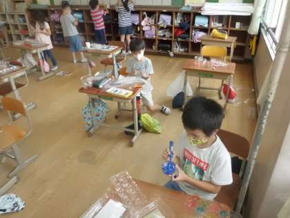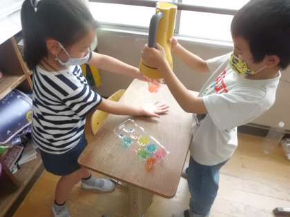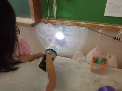 図画工作の時間に,透明の容器を使って,造形遊びをしました。透明の容器に色を塗ったり,重ねたりして影を作って遊びました。残念ながら太陽が出ていなかったので,また太陽が出ている時にやりたいと思います。