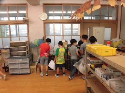 図工の「のぞいてみると」という学習が始まりました。箱に穴をあけて光が差し込んでくる様子から,箱の中に自分の思い描く世界をつくるというものです。今日はどんな世界をつくりたいかを考えました。そこから,その世界をつくるためにはどんな材料が必要かも考えました。その後,図工準備室に使えそうなものはあるかを調べにいきました。その他に使いたい材料があれば,おうちから持ってくるようにも伝えました。どんな世界ができあがるか今から楽しみです。