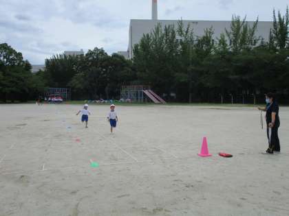 子どもたちは,この日をとても楽しみにしていたようで,「今日こそ,50m走するやんな?」「今日は,50m走するの?」と,朝から何人もの子がたずねてきました。