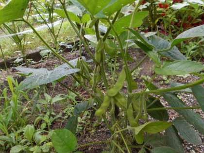 ダイズを見ると,葉が茂ったその中で,実をたくさんつけていました。どちらの花も,この後,種が観察できるまで順調に育ってほしいと思います。