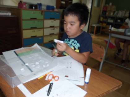 力を合わせてくすのきカレンダー作りを頑張っています。