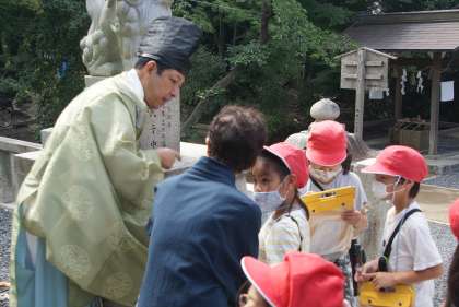 雨で延期になっていた校区探検に行きました。天穂日命神社では,本日納涼祭があり,お祈りをしていました。子どもたちの質問にも答えてくれました。改めて,地域にある神社のすばらしさを感じることができました。