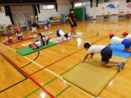 5年生は体育科で,マット運動の学習に取り組んでいます。