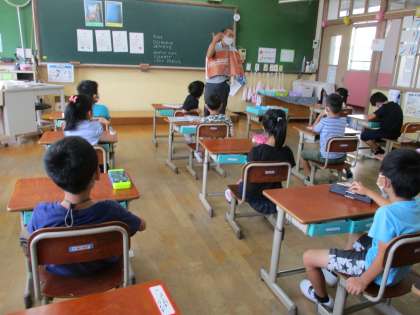 今日は,「A Beautiful Butterfly」を読んでもらいました。いろいろな色が出てきたようで,英語での言い方を教えてもらっていました。