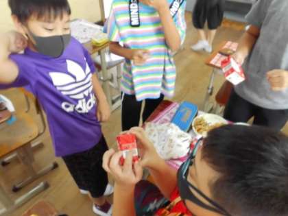 「カルシウムパワーを知ろう」という内容で食育の学習をしました。栄養教諭の外園先生に授業をしてもらいました。カルシウムにはどんなパワーがあるのか,どうすれば体の中でうまく働くのか,どんな食品に含まれているのかなどを学習しました。その後の給食前に牛乳の成分表を見て「給食の牛乳はカルシウムが227mgも入っている!」と早速見つけていました。