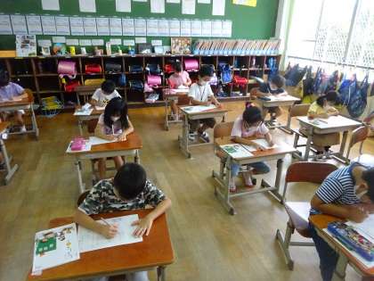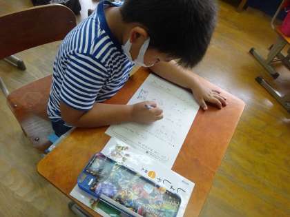 お手本をよく見ながら,よい姿勢で取り組むことができました。