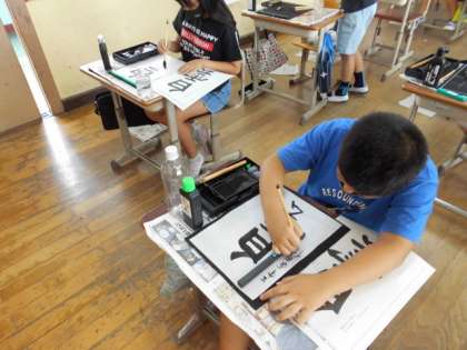 今回は文字の大きさの違いに気を付けながら「白雲」という字を書きました。画数の少ない白は小さめに書くと二文字のバランスがとれることを実感しながら書いていました。