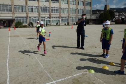 3年生と合同でリレーの学習をしています。