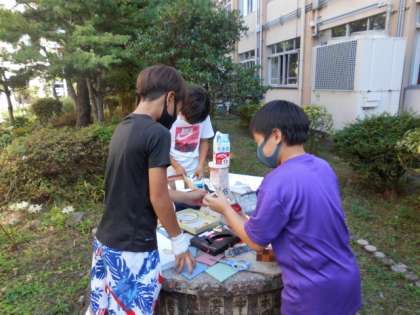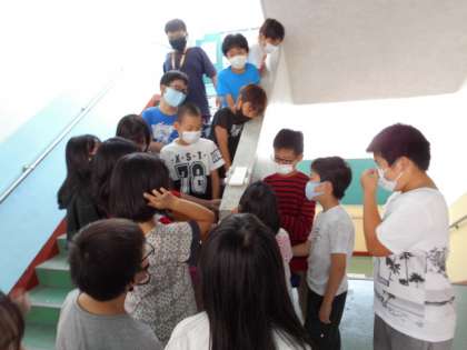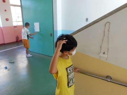図工の「あんなところがこんなところに見えてきた」という学習で,学校のいろいろな場所を様々なものに見立てて,その場所を変身させてみました。みんなそれぞれ試行錯誤しながら自分の思うように変身させていました。最後にはみんなで紹介し合いました。