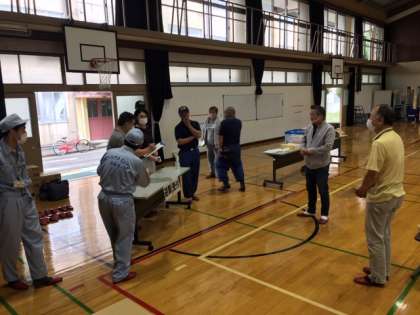 例年は多くの地域の方々が避難所となる石田小学校まで避難する訓練も行われますが,新型コロナウィルス感染拡大防止のため,今年度は自主防災会役員と消防分団の方のみで行われました。
