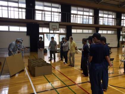 新型コロナウィルス感染症対策にかかる緊急避難場所の開設について講義のあと,実際に開設から運用までの動きを確認されました。