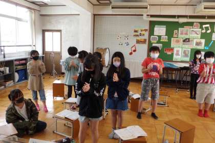 拍にのって,手拍子のリズムを重ねて演奏しました。