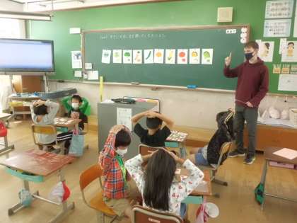 今年度初めてALTのブロフィー先生と外国語の学習をしました。野菜の言い方を教えてもらったり,ゲームをしたりと,楽しく英語の学習ができました。