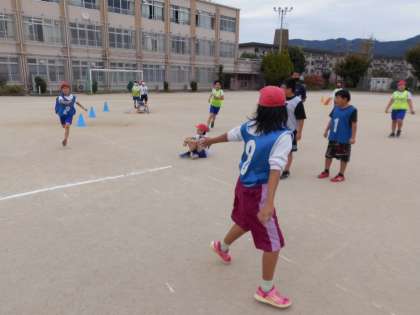 体育ではリレーの学習を進めています。チームの勝敗だけでなく,タイムを縮めることにもこだわっています。タイムを縮めるためには,バトンパスをうまくすることが必要です。チームごとで相談しながら少しずつ上達してきました。体育参観日で素晴らしい走りやバトンパスが見せられるように練習を重ねていきます。
