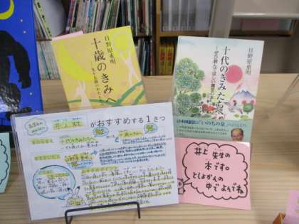 図書館だよりでもお知らせしましたが,学校図書館には教職員の「おすすめの本」を紹介するコーナーがあります。ぜひ一度,読んでみてください。そして,家族やお友達にも,広めてほしいと思います。