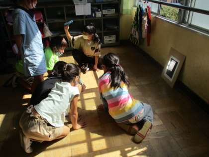 鏡で日光を集めるほど,日光を当てたところは,明るく,あたたかくなることがわかりました。