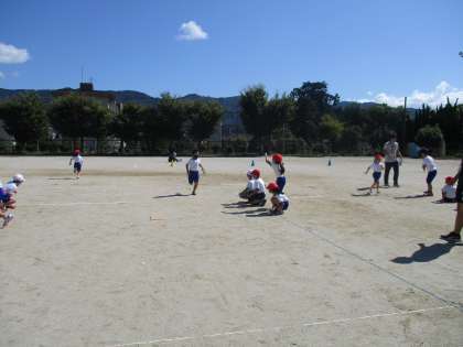 初めての2年生との合同チームによるリレーでしたが,2年生のバトンの受け渡しの仕方を真似しながら,一生懸命走っていました。