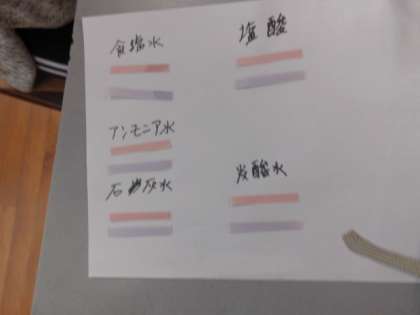 今日はリトマス紙を使って5つの水溶液の分類をしました。