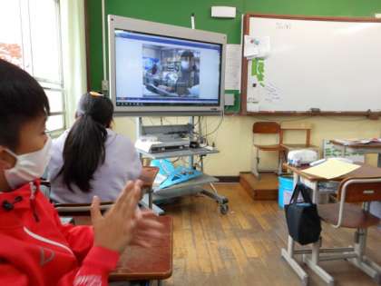 ※写真は「よい歯の表彰」を受けている様子をテレビ越しに見ている様子です。自然と拍手が起こりました。