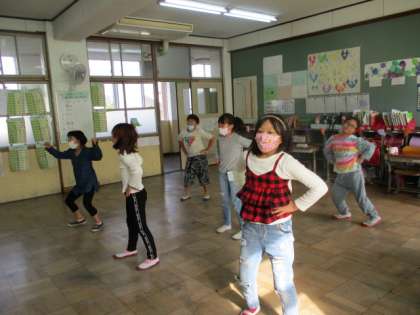 体育参観の時におどった全校ダンスをみんなで仲良く踊っていました。