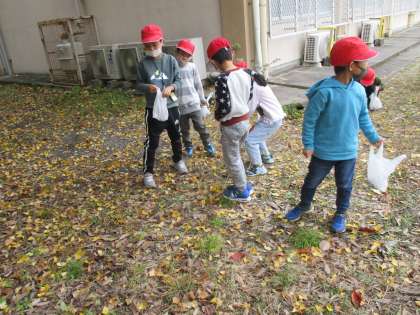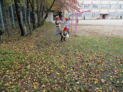 子どもたちは,色とりどりの落ち葉拾いを楽しんだり,どんぐり拾いを楽しんでいました,。