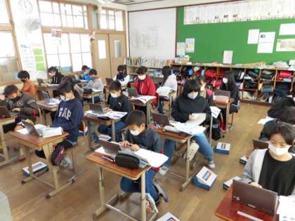 自分のIDやパスワードを入力して,ログインするなど初めての作業に戸惑いながらも,初めての試みに子どもたちは興味津々の様子でした。