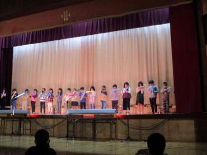 学習発表会を行いました。この日に向けて,今まで学習してきた曲を一生懸命練習してきました。1年生に格好いい姿を見せたい,音楽の楽しさを伝えたいという思いをもって発表しました。みなさん,よくがんばりました。