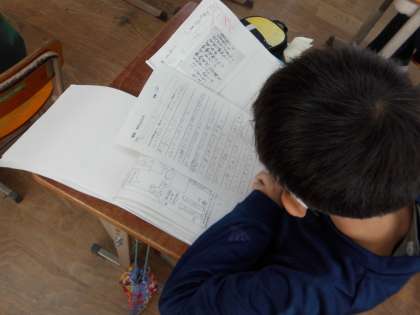 学習発表会でも「わたしとこころ」で学習したことを発表したので,今までの学習を振り返りました。学習発表会のビデオを見たり,今までのプリントを見返したりして感じたことを書きました。「相手に思いをきちんと伝えるようにしていきたい」「少しずつ自分もクラス全体も心が成長している気がする」「もっとみんなのいいところをみつけていきたい」などたくさんの意見が出ました。今回学んだことをこれからの生活にいかしていきたいですね。