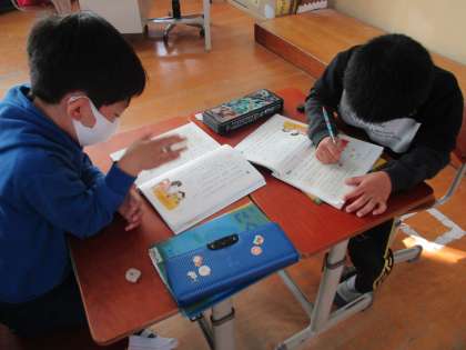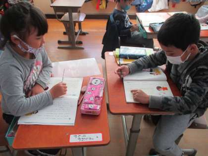 友達と「あ,ここ間違ってる。」「これはあってると思うで。」など話しながら,教科書に書かれている文章を読んでいました。