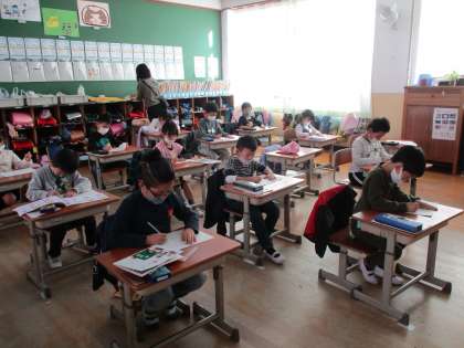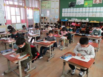 書写の時間は,みんなちょっと緊張しながら活動しています。