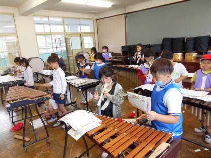小栗栖小学校の3年生と,2年後の統合を向けて合同学習を行っています。今日は,小栗栖小学校へ行って,体育と音楽の学習をしてきました。体育はエンドボールを行いました。音楽は,「パフ」をリコーダーと鉄琴や木琴で合奏しました。初めてたたく鉄琴や木琴に戸惑いながらも,すぐになれていました。2学期の交流学習で仲良くなって今日までの学習を名残惜しんでいました。次はまた,3学期に!とあいさつをかわしていました。
