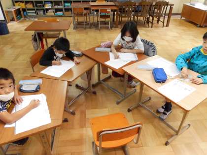 みんな真剣に算数の計算問題を解いています。