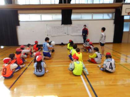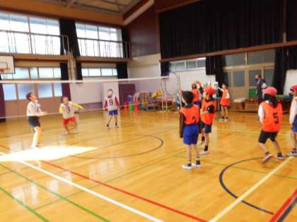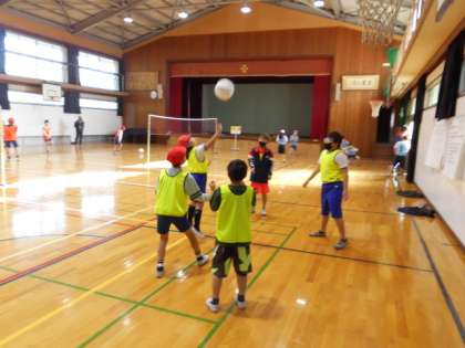 5年生は体育でソフトバレーボールの学習をしていますが,最後の学習を行いました。