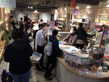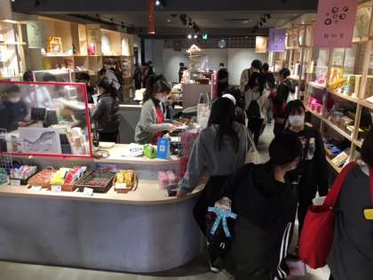 最後のお土産タイムを楽しんでます。この後は昼食を食べて、一路学校へ。