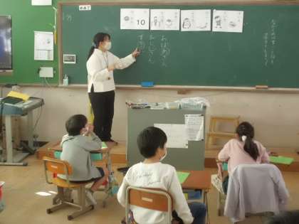 がっちゃんタイムでは,前回に続き,ひらがなの書き方について教えてもらいました。今日の学習は,のばす音の「う」「お」です。伸ばして発音するときにどちらのひらがなが入るのかを考えました。この調子で,読み書きマスターに一歩近づきました。