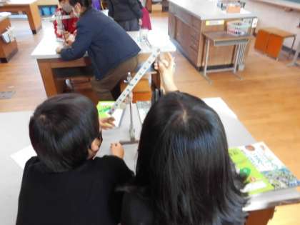 今日は実験用てこを使って,てこのかたむきと重りの関係について調べました。