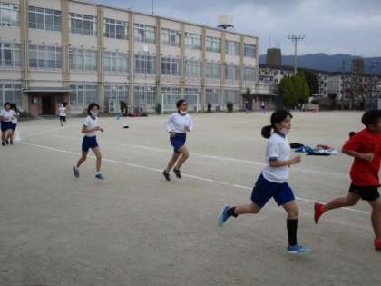 1周200mのトラックを5周 ⇒ 1000m走を行いました。タイムを計測することで,どの子どもたちも少しでも速く!という気持ちで力いっぱい走ることができました。走り終えたあとのすがすがしい表情が印象的でした。